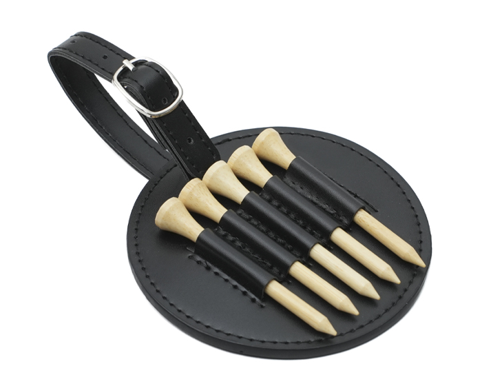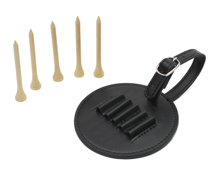 Estuche cosido con espacio individual para 5 soportes de bambú para pelotas de golf; cuenta con jareta con hebilla metálica, para colgarse en cualquier parte.Estuche cosido con espacio individual para 5 soportes de bambú para pelotas de golf; cuenta con jareta con hebilla metálica, para colgarse en cualquier parte.